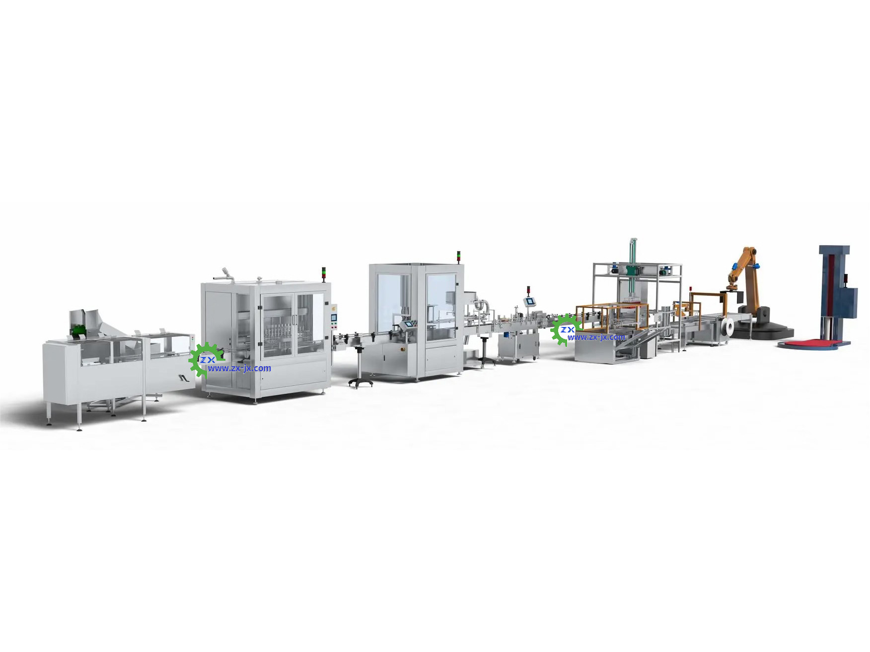 理瓶灌裝旋蓋貼標裝箱打包生產線